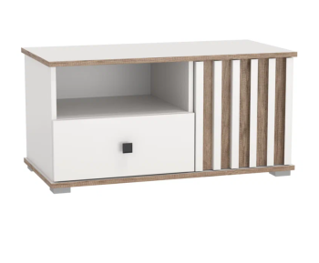 Тумба под ТВ из серии Либерти с открытой полкой, выдвижным ящиком и распашной дверцей.