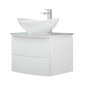 Тумба оснащена 2 выдвижными ящиками на направляющих push to open. Для открывания нужно нажать на фасад ящика. Сверху на крышке расположена стеклянная крашенная столешница, в которой находятся вырезы для установки раковин в столешнице. Верхний ящик высотой 80 мм с выпилом под коммуникации, нижний высотой 95 мм. Коромысло, фасады, крышка – МДФ в плёнке, корпус – ЛДСП. Имеются подвесы для крепления к стене. Столешница тумбы изготовлена из высококачественного и очень прочного стекла Лакобель. Раковина может быть выбрана на любой вкус. Классический вариант для комплектования тумбы Огайо – раковина Гамма 56.