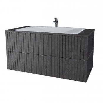 Роскошная, выполненная в современном стиле, модель “Дэрри” – это необычный дизайн и, одновременно, очень практичное решение для ванной комнаты. Колористика модели очень актуальна и притягательна. Фасады модели выполнены в редком цвете – темно-серый бетон арья, а боковины – в цвете темного цемента. Вариативность хранения и расположения различных ванных принадлежностей на тумбе “Дэрри” делает ее особенно вместимой. Фасады – МДФ 19 мм с 3D-фрезеровкой. Открывание нажатием, направляющие шариковые “push”, петли с доводчиком.