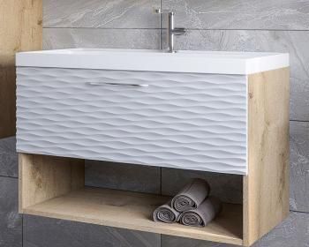 В модели “Ундина” теплый цвет “бунратти” гармонично обрамляет волнообразные 3D – фасады матового белого цвета, что в итоге создает ощущение природной плавности, натуральной естественности и общей привлекательности внешнего вида. Функциональность модели “Ундина” обеспечивается разнообразными закрытыми и открытыми полочками, компактной подвесной конструкцией и наличием доводчиков.