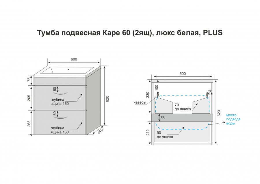 Тумба подвесная (ш/г/в): 600×450×620 мм