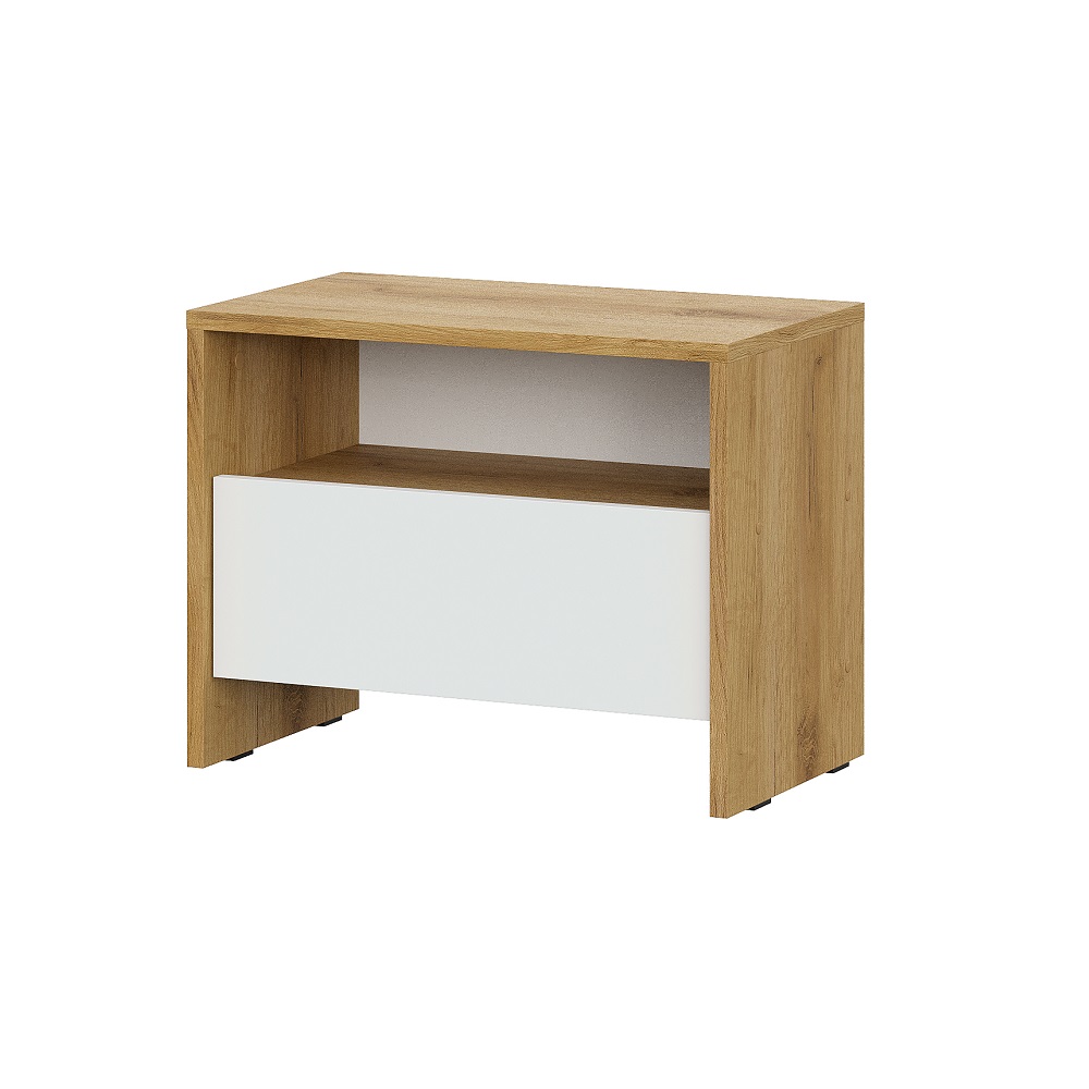 Тумба прикроватная Арника Дольче, выполненная в цвете «дуб золотой» с белыми декоративными элементами, станет стильным акцентом в вашей спальне. Этот современный предмет мебели оснащен выдвижным ящиком и открытой нишей, что позволяет удобно хранить мелкие вещи.