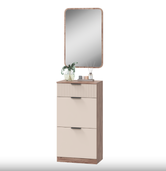 Комбинированная тумба для прихожей Тоскана – уникальный модуль, сочетающий в себе лучшие визуальные характеристики современной мебели, компактный размер иувеличенную вместимость. Комплектуется выдвижным ящиком на шариковых направляющих и секциями с откидными дверцами. Модуль дополненнавесным зеркалом Тоскана.