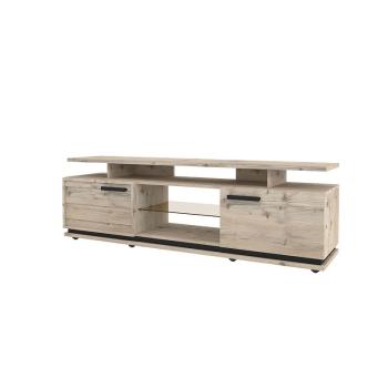 Стильная и аккуратная тумба гармонично впишется в интерьер гостиной. Визуально легкая конструкция не загромождает пространство и делает его более функциональным. Динамику Тумбе ТВ задает комбинация открытых поверхностей и глухих фасадов. Откидные фасады на кронштейнах. На ней без труда поместится телевизор с диагональю до 60’‘. Завершающий стильный элемент тумбы под телевизор – составной контрастный цоколь.