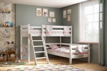 Вариант 8 угловая кровать «Соня» с наклонной лестницей — один из примеров идеального сочетания практичности, оригинальности и долговечности. Цветовое исполнение подходит сразу для нескольких стилей, а габариты — для комнат разной площади. Мебель для детской создается из безопасных материалов с отличной износостойкостью.