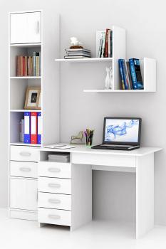 Каждый элемент возможно приобрести по отдельности. Состав комплекта: стол Милан-1 (1 шт.), стеллаж Либерти-4 (1 шт.), Блок ящиков Либерти малый (1 шт.), дверка для стеллажей Либерти (2 шт.), полка Файн-17 (1 шт.).