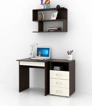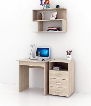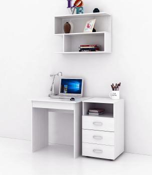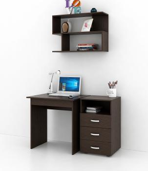 Каждый элемент возможно приобрести по отдельности. Состав комплекта: стол Милан-2Я (1 шт.), тумба Альба-4 (1 шт.), полка Файн-13 (1 шт.).