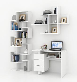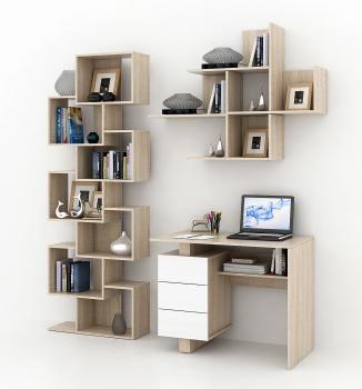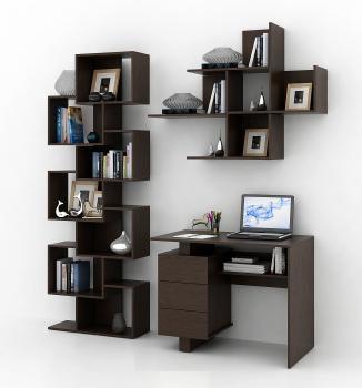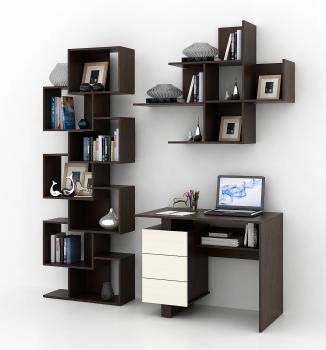 Каждый элемент возможно приобрести по отдельности. Состав комплекта: стол Ренцо-1 (1 шт.), стеллаж Зет-4 (1 шт.), полка Файн-17 (2 шт.).