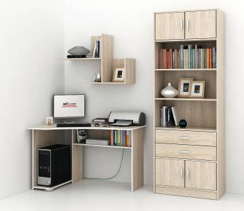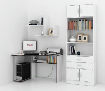 Каждый элемент возможно приобрести по отдельности. Состав комплекта: стол угловой Триан-1 (1 шт.), стеллаж Либерти-5 (1 шт.), блок ящиков Либерти большой (1 шт.), дверка для стеллажей Либерти (4 шт.), полка Файн-17 (1 шт.).