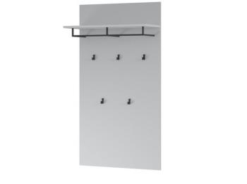 Компактная и функциональная вешалка из белого ЛДСП включает в себя самое необходимое для организации хранения в прихожей. Верхняя полка разместит головные уборы, а металлическая штанга и пять крепких крючков контрастного черного цвета поместят на себе одежду объемом с небольшой шкаф. Идеально компонуется со всеми модулями системы Йорк.