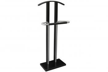 Лаконичный, современный и вполне оригинальный дизайн вешалки Галант 354 впишется в любой современный интерьер. Конструкция держателя брюк в этой вешалке решена оригинально и кроме своей основной функции выполняет еще и стилистическую нагрузку. При этом сама планка для брюк выполнена из натурального дерева. На двух вертикальных стойках закреплены плечики для пиджака. Вешалка устойчива за счет широкого основания.