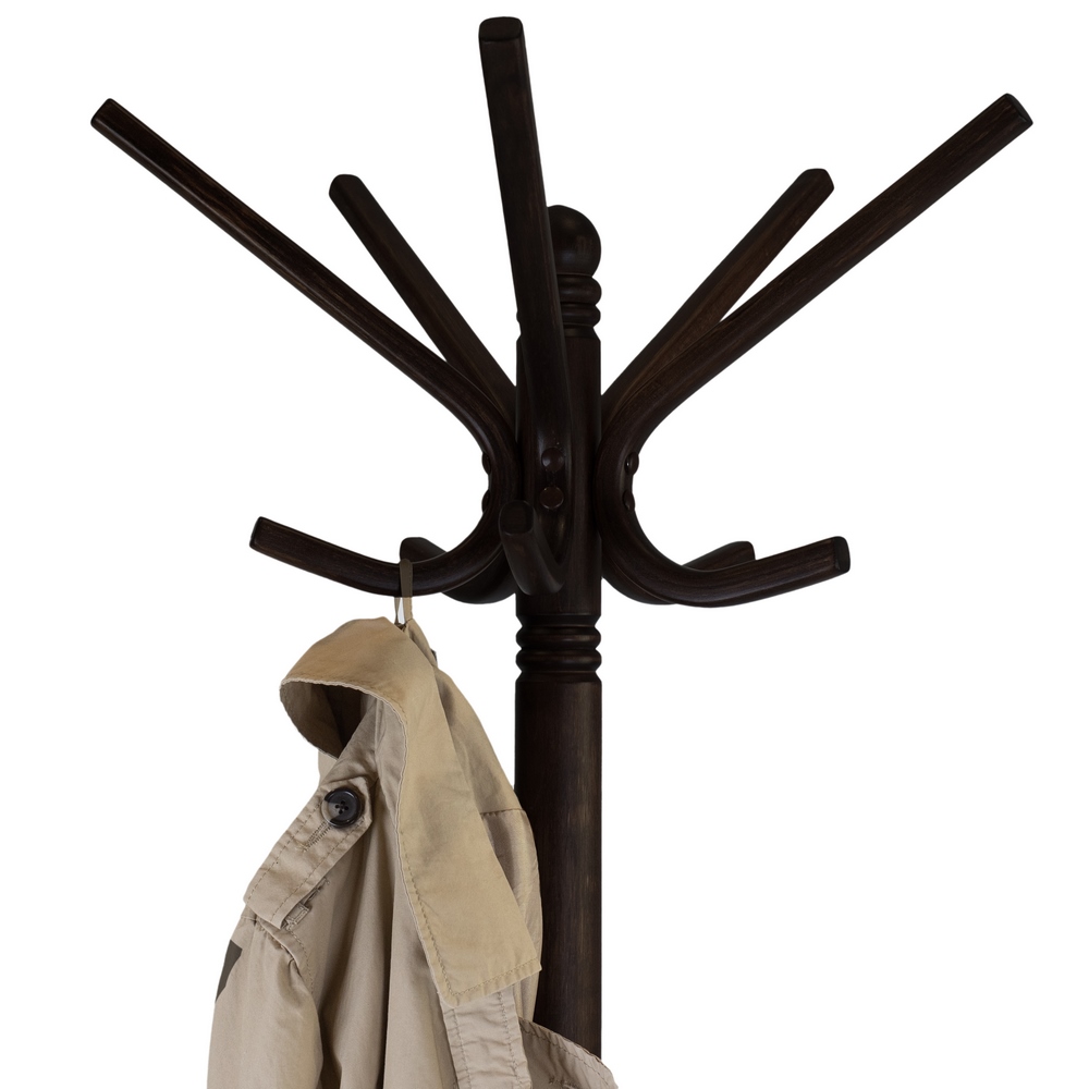 Практичная вместительность. Десять удобно расположенных крючков предоставляют ample space для организации одежды и аксессуаров. Высота вешалки (176 см) позволяет комфортно размещать длинные вещи, а квадратное основание (58.5×58.5 см) обеспечивает устойчивость и оптимальное использование пространства вокруг.