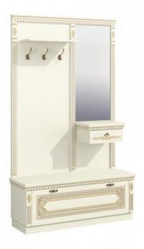 Вешалка Версаль МН-030-02. С помощью прихожей можно создать определенное впечатление о своем доме в целом. Пусть это впечатление будет непревзойденным. В этом поможет данная вешалка. Эта модель просто произведение искусства. Очень красивая и функциональная мебель. В наличии несколько крючков для одежды, полка, выдвижной ящик, который может служить еще и туалетным столиком и большое зеркало. Среди особенностей модели: европейские материалы, бронзовые металлические ручки, система выдвижения – роликовые направляющие полного выдвижения. Вешалка в пастельных тонах с изысканными узорами.