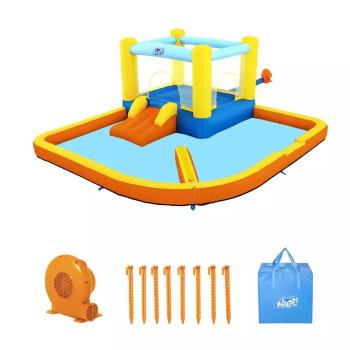 Игровой центр Bestway Beach Bounce наполнит радостью и весельем летние каникулы детей! Гигантский батут с сетчатыми защитными стенами идеально подойдет для наполненных энергией детей, чтобы прыгать и играть на природе. Так же он оснащен горкой, которая ведет в гигантский бассейн, и разбрызгивателем, который создает стену воды для детей, чтобы бегать и прыгать через нее, ваши малыши будут на столько счастливы, что станут выпрашивать выйти поиграть на улицу! Обладая двойной прошивкой для большей прочности Beach Bounce идеально подходит для вечеринок, встреч и жарких летних дней из года в год! Надувной водный центр Бествей Beach Bounce станет идеальной покупкой для родителей, взяв на себя важные обязанности по развлечению детей. Собирается легко и без инструментов Легко перевозится