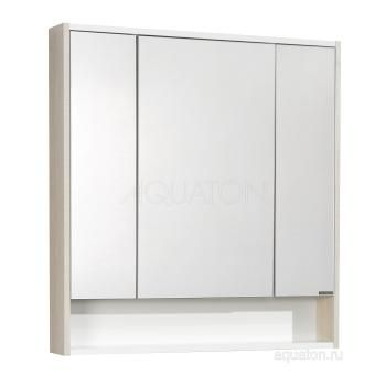 Для тех, кто ценит удобную организацию пространства ванной комнаты, стильным и практичным решением станет компактный зеркальный шкаф Рико 80 от AQUATON в комбинированной отделке. Корпус, в котором сочетаются белый цвет и элегантная текстура под дерево “ясень фабрик”, а также распашные фасады с зеркальным покрытием изготовлены из влагостойкой ЛДСП. Шкаф достаточно вместительный и оснащён двумя внутренними полками в каждой из трёх секций. Петли с доводчиком обеспечивают плавное закрывание фасадов-створок. Отсутствие ручек и открытая нижняя полка подчеркивают простой и лаконичный дизайн данной модели.