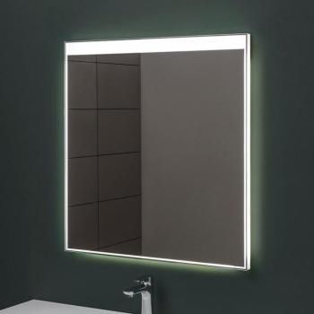 Зеркало Aquanet Палермо 8085 LED имеет универсальную установку. Тоненькая светящаяся полоска по всему периметру этого четырехугольного зеркала – LED-светильник. В верхней части она перетекает в широкую рамку. Зеркало размером 80х85 будет симпатично смотреться в ванной и зрительно увеличит размер маленького помещения. Оно будет выглядеть единым комплектом с тумбой шириной 80 см. Включение и выключение светильника происходит с помощью инфракрасного датчика, а он расположен в нижней части зеркала, то есть на той стороне, которая находится напротив широкой светящейся полосы.