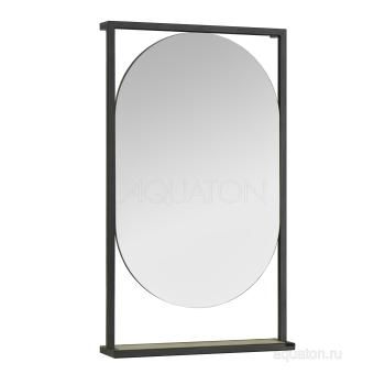 Зеркало Лофт Фабрик в размере 50 отличается необычным оригинальным дизайном и удобным функционалом. Черные металлические профили в форме прямоугольника обрамляют овальное зеркало, под которым находится полочка из влагостойкой ламинированной плиты. Открытая полочка удобна для косметических и декоративных мелочей, которые всегда должны быть под рукой.