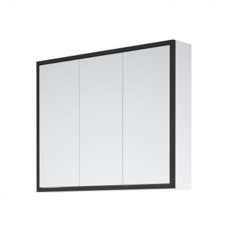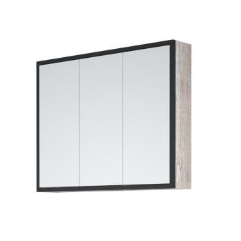 Коллекция выполнена в актуальном стиле “Лофт”. Зеркало-шкаф закреплено на металлическом каркасе. У зеркало-шкафа 3 двери, в которых используются специальные толкатели, чтобы мягко открывать закрывать их. Позади дверей – полки.