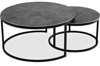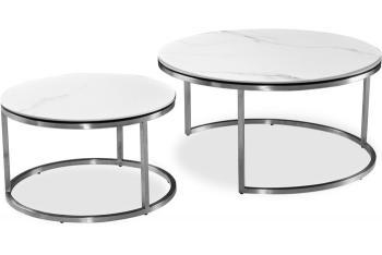 Журнальный стол Amato Pranzo комплект от хорватского производителя Pranzo. Модель доступна в оттенках: белый мрамор, серая керамика. Каркас выполнен из металла. Столешница изготовлена из керамики. Изделие обладает устойчивостью к влаге. Габариты: высота — 35 см, глубина — 70 см.