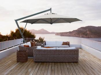 Купол выполнен из акрила 350 г/м² с пропиткой. Варианты цвета: слоновая кость (A1), терракота (T2), бордовый (T3), серо-коричневый (T6), белый (T7), серебристо-серый (T8), антрацит (T9), черный (S1). Цена на сайте указана для зонта с куполом в цвете слоновая кость (A1) без волана.